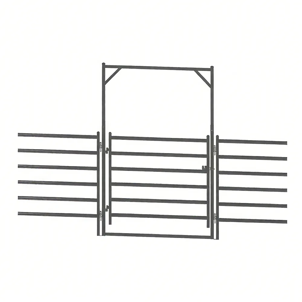 The Galvanized Steel Horse Yard Gate is a high-performance gate suitable for horse farms and farms. It controls the entry and exit of horses within a designated area and is a key component of a horse fencing system. It can be used in conjunction with our 6-Rail Galvanized Steel Horse Yard Fencing. This fence gate is widely used in horse farms, ranches, breeding farms, and other outdoor environments requiring secure, sturdy fencing.